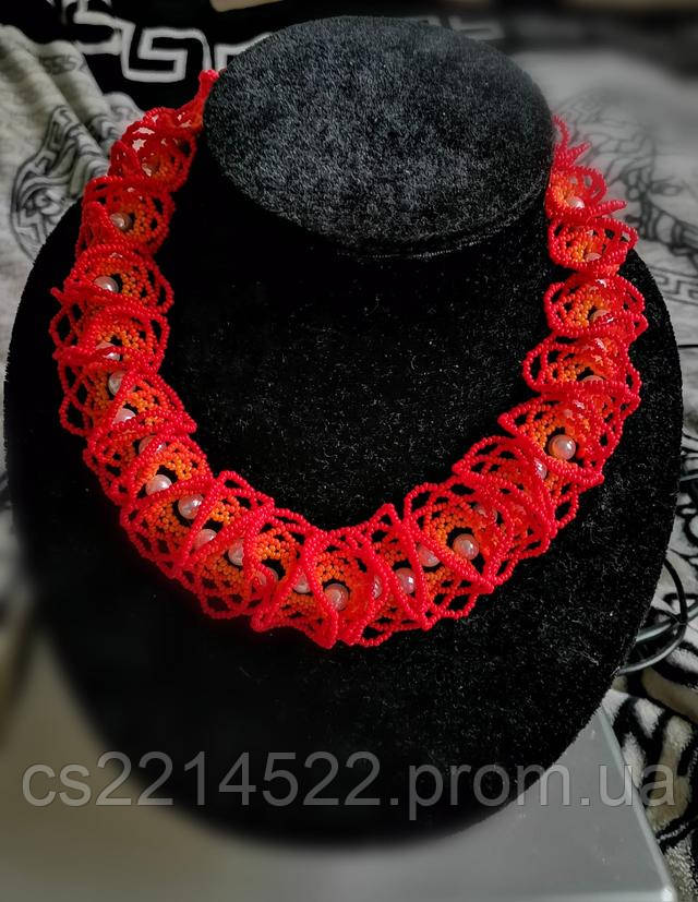 Дуже гарне кольє. прикрасить собою будь-яке вбрання. Вогняного кольору. Ручна робота. Виготовлений із бісеру та намистин.